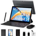 LEVIRTU – Tablet de 10 pulgadas Android 14 con Octa-Core, 36GB RAM + 128GB ROM (1TB TF), 2.4G+ 5GWiFi, Bluetooth 5.0, GPS, 8000mAh,13MP+8MP, FHD 1920 x 1200, tableta táctil facial con teclado, azul