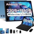 Tablet Android 14 10 Pulgadas, 22GB RAM + 128GB ROM (TF 1TB), Octa-Core, 2.0GHz, Widevine L1, 8000mAh, Dual WiFi, 5MP+8MP, Carcasa MetÃlica, Tablet 2 en 1 con Teclado y Ratón-Azul