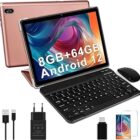 Tablet 10 Pulgadas Android 12 con 5G Wi-Fi, HD Tablets con 8GB RAM + 64GB ROM (TF 1TB), GPS, 8 Cores 2.0 GHz, Bluetooth 5.0, USB-C, 6000 mAh, 1280*800, Tablet con Teclado + Ratón + Funda, Oro Rosa