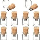 10 Piezas Botella Corcho Vaso 2.0/4GB Cork Glass Bottle – Memoria Almacenamiento de Datos USB Flash Pen Drive Memory Stick Vaso Transparente