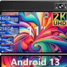 2024 Newest Tablet 11 Pulgadas 2K Octa-Cores 16GB RAM + 256GB ROM (1TB TF), 2K Pantalla 2000*1200, Android 13, WiFi 5G, BT 5.0, 4 Altavoces, 8600mAh, 13MP Cameras, Cuerpo Metálico, con Funda, Negro