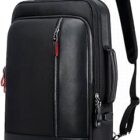 ABNMJKI Mochila Mochila de Cuero Negro para Hombre Mochila con Carga USB Mochilas Escolares Bolsillo Oculto Antirrobo Male Laptop Backpacking