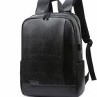 ABNMJKI Mochila Mochila masculina PU De cuero impermeable USB Lightness de carga Bolsas de espalda negras Laptop Travel School Bagpacks al aire libre Hombre