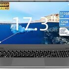 SGIN 17,3" Ordenador Portátil 12 GB RAM 512 GB SSD (Tarjeta TF de 512 GB), Celeron N5095A, FHD 1920 * 1080 IPS, Batería de 5000 mAh, Teclado de Tamaño Completo, 2xUSB 3.0, Doble Banda WiFi (Gris)