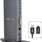 Estación de Acoplamiento Universal WAVLINK USB 3.0/USB C con Dos Salidas de vídeo (HDMI, DVI o VGA) para Ordenador portátil/PC o Mac (Gigabit Ethernet y 6 Puertos USB 3.0)