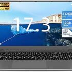 SGIN 17,3" Ordenador Portátil 12 GB RAM 512 GB SSD (Tarjeta TF de 512 GB), Celeron N5095A, FHD 1920 * 1080 IPS, Batería de 5000 mAh, Teclado de Tamaño Completo, 2xUSB 3.0, Doble Banda WiFi (Gris)