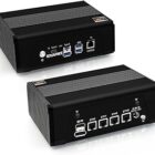 ROUAFWIT Mini PC Firewall AMD Ryzen R7 7840HS, DDR5 8G RAM 256G SSD Micro Oficina Ordenador Sobremesa, 4 x i226V 2.5GbE Gigabit, USB4 40Gbps, Type-C 10G, Dual Fan, WiFi, BT, Negro