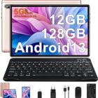 FACETEL Tablet 10 Pulgadas Android 13 Tablet Octa-Core 2.0 GHz, 12GB RAM + 128GB ROM (1TB TF), 5G WiFi, Bluetooth 5.0, 5MP+8MP, HD IPS, Facciale ID, Widevine L1, Tablet con Teclado y Raton – Oro Rosa