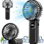 AutoYet Mini Ventilador de mano: Ventilador portatil bateria recargable de 3000 mAh con pantalla LED, Ventilador USB de 5 velocidades para viajar en casa dormitorio al aire libre Oficina (negro)