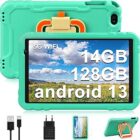 AOCWEI Tablet Niños 10 Pulgadas 8 Core Android 13 Tableta con 14GB RAM+128GB ROM (TF 512) HD IPS Display |5MP+8MP |2.4G Wi-Fi |8000mAh-Super Protective Antichoque Eva Estuche Protector-Verde Claro