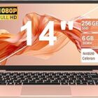 Ordenador Portatil Celeron N4020 Up to 2.8Ghz, Ordenadores Portatiles 14 Pulgadas Win 11 con 5G WiFi 6+256GB SSD Expansión 1TB, BT 4.2 1920*1080 FHD Mini Puerto Multimedia Portatiles Buenos-Oro