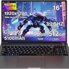 Ordenador Portátil 16 Pulgadas Win11 16+512GB SSD Soporte 1TB SSD Expansión Portátil gaming Core i3 (hasta 3,2 GHz) 2.4G+5G WiFi Bluetooth 4.2 Type-C USB HDMI Pantalla ultra HD 1920×1200 FHD – Gray