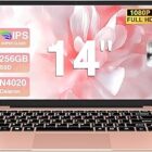 bvate Ordenador Portátil 14", 6GB+256GB SSD N4020(hasta 2.8Ghz) 2-Core Win 11 PC 1920×1080 FHD Dual WiFi BT 4.2 Soporta 1TB SSD Expansión con Ratón Inalámbrico para Trabajo-Estudio-Aprendizaje-Oro