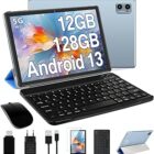 Oangcc 2024 Newest Tablet 10 Pulgadas Android 13 OS, 12 GB RAM+128 GB ROM(TF 1TB), 5G+2.4G WiFi, 8 Core 2.0 GHz, BT 5.0, Widget, 6000 mAh, 5+8MP, Certificada GMS Tableta con Teclado + Funda – Azul