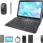 EagleSoar Tablet 10 Pulgadas Android 12, Tablet PC con 64GB ROM y 512GB TF, Cámara Dual, 2.4G/5G WiFi, Bluetooth 4.2, Tablet con Teclado, Mouse inalámbrico, Bolígrafo, Funda para Tablet