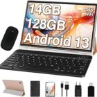 2024 Newest Android 13 Tablet 10 Pulgadas 14GB RAM + 128GB ROM (1TB TF), Batería 8000mAh, Octa-Core 2.0Ghz, GPS, 5G + 2.4G WiFi, BT 5.0 | 5+8MP | Type C | Tablet PC con Funda, Teclado e Ratón – Oro