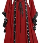 Vestidos Medievales para Mujer,Tallas Grandes Vintage Vestido Gotico Mujer Cuello Cuadrado con Mangas Acampanadas Capa con Capucha Disfraz Bruja Mujer Disfraces Halloween Mujer Carnaval