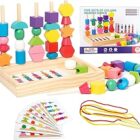 Juguetes Montessori: este juguete de madera para ensartar consta de un marco de... Leer más