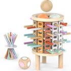 Montessori Juguetes con 28 Palitos de Coloridos Juegos de Mesa Niños Niñas 3 4 5 6 7 8 9 10 11 12 Años Regalo, Juego Educativo Familiar para Cognición y Habilidades Motoras Finas Torre de Madera