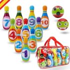MandA® Bolos Infantiles – Juego de Bolos para Niños – Incluye Bolsa Transporte – Juegos niños. Regalo niños de 1-6 años. – Juguetes Montessori – Bowling. 10 Bolos de 14cm. Juguetes 2 años.
