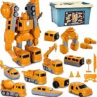 WixbFyn Juego de Juguetes de vehículos de construcción Robot transformable magnético con Caja de Almacenamiento – Puzzle Creativo Educativo DIY -Juguetes para niños y niñas de 3 a 9 años