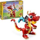LEGO Creator 3 en 1 Dragón Rojo de Juguete Convertible en Figura de Pez o Ave Fénix, Juego Infantil de Animales como Regalo para Niños y Niñas de 6 Años o Más de Temática de Año Nuevo Chino 31145