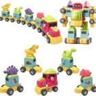 TOYABI Dinosaurios Juguetes, 5 en 2 Coche T. Rex, Coche Estegosaurio, Coche Triceratops Combinar como Tren Juguete y Transformers Juguete, Regalo para Niños y Niña de 3, 4, 5, 6 7 Años