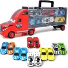 Camión de Transporte Transportador de Automóviles con 12 Coches Maletín portacoches Juguete para Niños y Niñas (rojo)