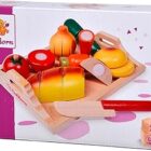 Set de juguetes de madera compuesto por alimentos, cuchillo y tabla de cortar,... Leer más