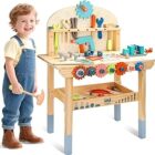 medoga Banco de herramientas para niños, banco de trabajo de juguete, banco de herramientas de madera, banco de trabajo con juego de herramientas, banco de construcción de madera, juguete para niños y