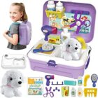 HERSITY Maletin Veterinaria Juguete con Mochila, Set Veterinario Perritos de Juguete, Juego Cuidado de Mascotas, Regalos para 3 4 5 6 Años Niños Niñas
