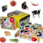 magdum 85 Fotos Set Animales&Frutas&Verduras en Caja de Lata de Regalo-imanes de bebé Realistas-85 Grandes Juguetes de imán para 3 años-Juegos Educativo Aprender magnético para niños-Teatro Magnético