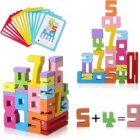 Bloques de números de Madera, 20 Piezas Bloques de Madera para Construir números con 15 Tarjetas didácticas para niños, Regalos para niñas, niños y bebés