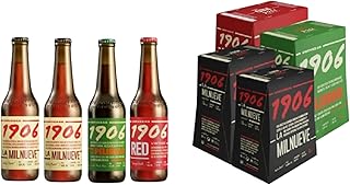 Cervezas 1906 Red Vintage: estilo Red Ale envejecido con color rojizo intenso, notas de MALTA caramelizada pilsen y tostada y frutas maduras, maíz, LÚPULO Nugget y LEVADURA seleccionada, sabor con matices de vainilla y madera. Maridaje con carnes asadas, quesos añejos, postres de chocolate. Consumir a 8-10°C. Alc 8% vol