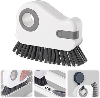 2 in 1 Groove Cleaning Brush, Window Track Cleaning Tools, Multifunction Window Track Cleaner with Hard Bristle and Hidden Scraper, Crevice Brush for Sliding Door Track, Window Seal, Sill (Gray)