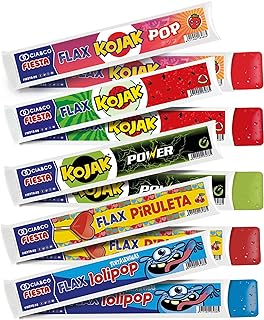 💕 Cada Bolsa Contiene 20 Flashes con 5 Sabores refrescantes; 4 Piruleta de Cereza, 4 Kojak Pop Fresa, 4 Chupa-Chups Kojak Sandia, 4 Bebida Bebida Energética y 4 Lolipop Pinta Lenguas