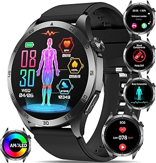 【1.43″ AMOLED Pantalla Táctil HD & Siempre en Exhibición】El reloj ecg utiliza una pantalla AMOLED de alta definición de 1,43″ con resolución de alta definición de 466 x 466. Los colores son ricos y delicados, la imagen es vívida y claramente visible y viene con un protector de pantalla adicional. H Band APP tiene 100+ bonitas esferas incorporadas, y también puedes personalizar tu propia esfera. Además, el reloj inteligente también admite pantalla siempre en exhibición.