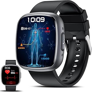 🎮📱【Múltiples Funciones Útiles】: Este reloj ecg está equipado con una batería de gran capacidad, que puede utilizarse de 3 a 5 días al día, y el tiempo en espera es de más de 20 días. También puede utilizar el asistente de voz con inteligencia artificial para hacer preguntas, reproducir música, programar alarmas, consultar el tiempo y mucho más. Este reloj deportivo también incluye funciones útiles como seguimiento del ciclo menstrual, entrenamiento respiratorio, calculadora, juegos, recordatorio de sedentarismo y mucho más.Si tiene alguna pregunta sobre el funcionamiento, no dude en ponerse en contacto con nosotros.