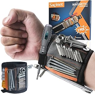 2PCS Magnetic Wristband for Screws, Gifts for Men and Women, Wrist Magnet Screw Holder with 15 Extra Strong Magnets and Two Pockets for Non-Magnetic Items, Helpful Father Gift with Gift Box