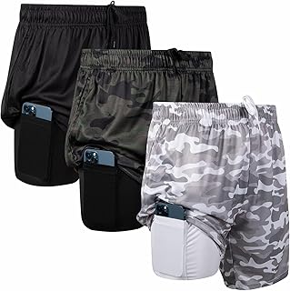 3 Pack Mens 2 in 1 Athletic Running Shorts 7 inch Inseam Workout Gym Compression Shorts for Men