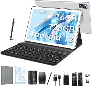 🔋Batería grande de 7000mAh: La tableta Android cuenta con una batería de 7000mAh que ofrece hasta 360 horas en modo de espera, 8 horas de juego, 9 horas de navegación web, más de 20 horas de reproducción de música y videos, y llamadas. La carga es más sencilla gracias al puerto Tipo-C y más rápida con 5V/2A. Además, soporta WiFi de doble banda 2.4G+5G, 5GWIFI para una velocidad de transmisión más rápida y una conexión más estable. La tecnología de conectividad Bluetooth permite conectarse con teclados para tabletas.