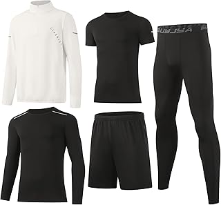 5Pcs Men’s T Shirts Workout Long Sleeve Athletic Zip Pocket Shorts Jackets Compression Pants Gym Clothes
