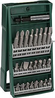 Suministro: 16 puntas de atornillar de 25 mm de longitud (3 para cabeza cruzada PH 1/2/3, 3 para tornillos Pozidriv PZ 1/2/3, 3 para cabeza ranurada S 4,5/5,5/8, 4 para cabeza Torx T 15/20/25/30, 3 para cabeza hexagonal H 4/5/6), 8 puntas de atornillar de 50 mm de longitud (3 para cabeza cruzada PH 1/2/3, 2 para cabeza ranurada S 4,5/5,5, 3 para cabeza Torx T 15/20/25), 1 soporte magnético universal