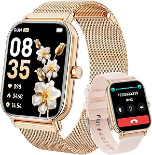 【24/7 Health Monitoring and sleep track】Reloj inteligente mujer registrará sus pasos diarios,calorías quemadas y distance.With sensores avanzados para controlar la frecuencia cardíaca,SpO2 y los patrones de sueño(sueño profundo,sueño ligero,tiempo despierto).Todos los datos registrados se pueden sincronizar con su teléfono para el análisis,proporcionando información valiosa sobre su salud y la promoción de ajustes de estilo de vida.(Los datos cann’t utilizado para médicos,es sólo para refrence)