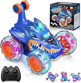 🦈【Coche teledirigido rotante a 360°】El camión monstruo tiene un eje delantero giratorio de 360 grados, puede realizar increíbles giros de fantasía de 360 ° con facilidad. Las ruedas y el cuerpo del coche de control remoto emiten luces frescas y pueden completar un espectáculo de luces por la noche.