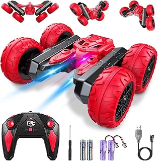 Rotación de 360° y giro de 180°: Este juguete de coche teledirigido puede girar 360 grados, 180 grados de doble voltereta, rotación in situ deformable, ofrece diferentes experiencias de juego y efectos visuales, ¡ los niños pueden controlar fácilmente el coche de juguete hacia adelante, hacia atrás, girando y cualquier otra acrobacia loca! Disfrute ilimitado para sus hijos