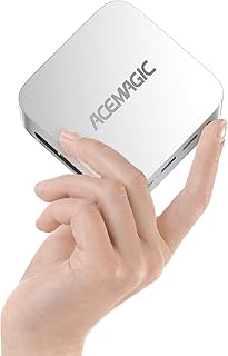 【Crear estética de escritorio】ACEMAGIC ordenador compacto es sólo 15w consumo de energía en comparación con el ordenador de sobremesa, el tamaño es sólo 10cm*10cm*3.3cm, una vigésima parte de un ordenador de sobremesa, mini y compacto, no ocupa espacio, puede utilizar el soporte VESA para ponerlo detrás del monitor, se convierte en TODO EN UNO, es muy cool. Reduce en gran medida el espacio del escritorio, lejos de los cables ruidosos, dándole un entorno de escritorio limpio y despejado.
