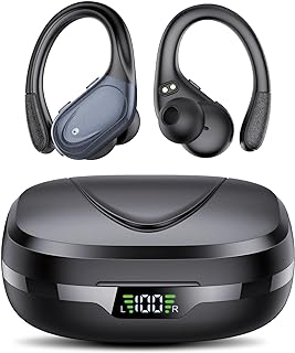 Ajuste Cómodo e Impermeabilidad IPX7: Auriculares inalámbricos deportivos con 3 pares (S/M/L) de auriculares de silicona suave para una fuerza estable y uniforme. Diseño antideslizante en el extremo de los ganchos para las orejas, para que no se caigan incluso durante el ejercicio extenuante. Con tecnología de impermeabilización con nanorrevestimiento y sellado de costuras con clasificación IPX7, que los hace resistentes al sudor y la lluvia diarios.