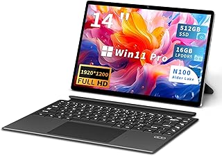 🎉【Teclado Bluetooth desmontable & soporte magnético】La Ordenador Portátil con Windows viene con un teclado retroiluminado magnético desmontable. Solo necesita emparejar y conectarse manualmente a través de Bluetooth para lograr un teclado independiente y un control flexible. También viene con una exclusiva forma de U extraíble. soporte magnético que se ajusta de 0° a 150°, lo que le permite transformar sin problemas su tableta en una laptop portátil.