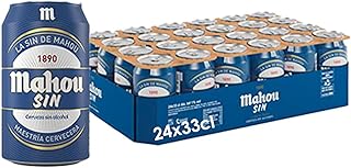 Pack 24 latas de 33 cl de cerveza Mahou Sin, 0.0% de alcohol. Mahou Sin alcohol es la cerveza que gracias a un proceso de fermentación controlado se obtiene un producto de mínimo contenido en alcohol, garantizando el auténtico sabor cervecero y tradicional de Mahou. Para un mayor disfrute se recomienda consumir entre 4º y 6º C